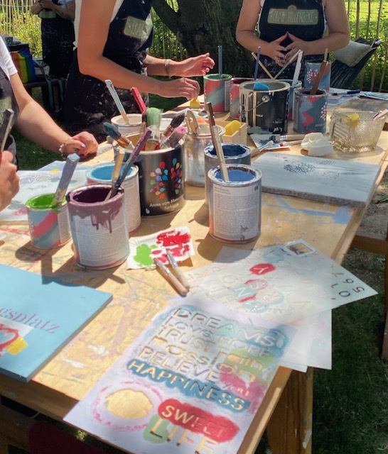 Wir experimentieren ca. 2,5 Stunden mit ansprechenden Kreidefarben und gestalten unter Anleitung der Farb- und Kreativexpertin FRAU HILGENBERG wunderschöne und einzigartige Deko-Schilder für Haus und Garten!